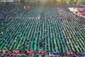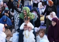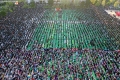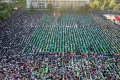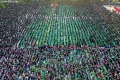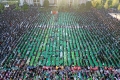 This aerial photo taken on April 21, 2022, shows Albanian Muslims praying at Skanderbeg square on the first day of the Muslim festival marking the end of the holy fasting month of Ramadan in Tirana. Muslims celebrate the Eid Al-Fitr holiday, which marks the end of the fasting month of Ramadan.