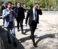 The candidate for the municipality of Tirana, Belind Kellici, Ilir Alimehmeti and Juli Deda entering the building of the Muslim Community in a meeting with the chairman of the Muslim Community, Bujar Spahiu, to extend their wishes on the occasion of the Eid al-Fitr or the coming Eid al-Fitr after the holy month of Ramadan.