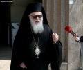 Orthodox Archbishop Anastasios Yannoulatos speaking to the journalists after a meeting with the chairman of the Muslim Community, Bujar Spahiu, to congratulate him on the occasion of Eid-ul-Fitr or the Great Eid, which comes after the holy month of Ramadan.