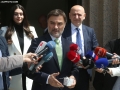The commanding chairman of the DP, Enkelejd Alibeaj, speaking to the journalists after a meeting with the chairman of the Muslim Community, Bujar Spahiu, to congratulate him on the occasion of Eid-ul-Fitr or the Great Eid, which comes after the holy month of Ramadan.
