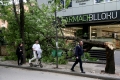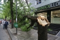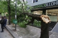 Police and citizen forces walking near the Former Bloc area, where a tree fell down due to the strong wind and bad weather. Fortunately, no one was injured by the falling tree.