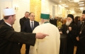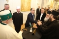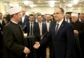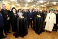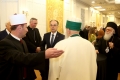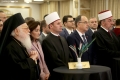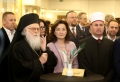 Orthodox Archbishop Anastasios Yannoulatos, archbishop of the Albanian Catholic Church Monsignor Arjan Dodaj, head of the Muslim Community, Bujar Spahiu and President Bajram Begaj during a ceremony organized in the premises of Tirana International Hotel on the occasion of the 100th anniversary of the establishment of the institution of the Muslim Community of Albania. During the ceremony, the speakers talked about the coexistence of religions in Albania and the importance of the Muslim religion throughout the nation's history.
