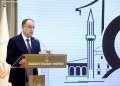 Head of the Muslim Community, Bujar Spahiu speaking during a ceremony organized in the premises of Tirana International Hotel on the occasion of the 100th anniversary of the establishment of the institution of the Muslim Community of Albania. During the ceremony, the speakers talked about the coexistence of religions in Albania and the importance of the Muslim religion throughout the nation's history.
