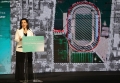 The representative of the Dutch architecture studio MVRDV presenting during a ceremony held in the framework of the international competition for the new stadium of the city of Durres. The winner was the Belgian company 51N4E, which will design the stadium as a modern complex which will have training fields, basketball courts and swimming pools. The Belgian studio 51N4E, which won against studios Bjarke Ingels Group, BIG (Denmark) and MVRDV (Holland), is the same studio that designed Skanderbeg Square.
