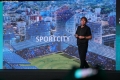 The representative of the Danish architecture studio Bjarke Ingels Group, BIG presenting during a ceremony held in the framework of the international competition for the new stadium of the city of Durres. The winner was the Belgian company 51N4E, which will design the stadium as a modern complex which will have training fields, basketball courts and swimming pools. The Belgian studio 51N4E, which won against studios Bjarke Ingels Group, BIG (Denmark) and MVRDV (Holland), is the same studio that designed Skanderbeg Square.