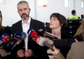 The State Commissioner of Elections, Ilirjan Celibashi, speaking to journalists during an operational test for electronic voter identification devices (PEI) in Lunder, Tirana, as part of the May 14 elections. The use of this device avoids manipulations related to biometric identification.
