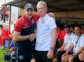 FK Struga-Trim-Lum coach, Shpetim Duro and the FK Sileks, Goran Simov before the football match, FK Struga-Trim-Lum vs FK Sileks, 3-0, played in the stadium Gradaska Plaza in the city of Struga. After the match, Struga became the fourth Albanian team to win the national championship of North Macedonia, being declared champions 2 weeks before the championship closes.