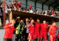 FK Struga-Trim-Lum players posing before the football match, FK Struga-Trim-Lum vs FK Sileks, 3-0, played in the stadium Gradaska Plaza in the city of Struga. After the match, Struga became the fourth Albanian team to win the national championship of North Macedonia, being declared champions 2 weeks before the championship closes.