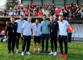 FK Struga-Trim-Lum coach, Shpetim Duro and his staff before the football match, FK Struga-Trim-Lum vs FK Sileks, 3-0, played in the stadium Gradaska Plaza in the city of Struga. After the match, Struga became the fourth Albanian team to win the national championship of North Macedonia, being declared champions 2 weeks before the championship closes.