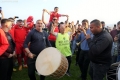 FK Struga-Trim-Lum players celebrating the victory of the National Championship of North Macedonia after the football match, FK Struga-Trim-Lum - FK Sileks, 3-0, played in the stadium Gradaska Plaza in the city of Struga. Struga becomes the fourth Albanian team to win the national championship of North Macedonia, being declared champions 2 weeks before the championship closes.