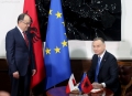 The Polish President, Andrzaj Duda and the Albanian President, Bajram Begaj shaking hands inside the premises of the Presidency during Duda's visit to Tirana.