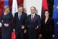 Polish President Andrzaj Duda and his wife Agata Kornhauser-Duda and Albanian President Bajram Begaj and his wife Amarda Baegaj posing inside the premises of the Presidency during Duda's visit to Tirana.