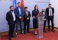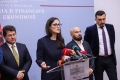 MEETING OF THE MINISTRY OF FINANCE WITH BUSINESSES - The Minister of Finance and Economy, Delina Ibrahimaj, Filip Gjoka of Filip & Co and the Head of Albanian Exports, Alban Zusi during a press conference after a meeting between the Minister and the Governor of the Bank of Albania, Gent Sejko with representatives of Albanian businesses. During the conference, Ibrahimaj announced some measures that the ministry will take to help exporting businesses in Albania, which have been affected by the movements of the exchange rate in the country during the last months.