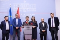 The Minister of Finance and Economy, Delina Ibrahimaj, Filip Gjoka of Filip & Co and the Head of Albanian Exports, Alban Zusi during a press conference after a meeting between the Minister and the Governor of the Bank of Albania, Gent Sejko with representatives of Albanian businesses. During the conference, Ibrahimaj announced some measures that the ministry will take to help exporting businesses in Albania, which have been affected by the movements of the exchange rate in the country during the last months.