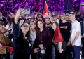 The Minister of Finance and Economy, Delina Ibrahimaj taking a photo with some young people during the closing rally of the Socialist Party for the electoral campaign before the local elections on May 14 in the Olympic Park.