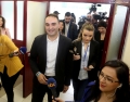 The candidate of the coalition Bashke, Fitojme for the municipality of Tirana, Belind Kellici, entering to vote at the voting center in the Dora D'Istria School in Tirana for the local elections of May 14. In Albania, citizens have started voting for the local elections, to elect the mayors for the next 4 years.