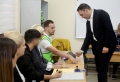 The candidate of the coalition Bashke, Fitojme for the municipality of Tirana, Belind Kellici, being registered to vote at the voting center in the Dora D'Istria School in Tirana for the local elections of May 14. In Albania, citizens have started voting for the local elections, to elect the mayors for the next 4 years.