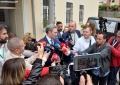 The Mayor of Shkodra, Bardh Spahia speaking to journalists after voting in the premises of a school in Shkodra for the May 14 local elections. In Albania, citizens have started voting for the local elections, to elect the mayors for the next 4 years.
