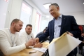 The candidate of the coalition Bashke, Fitojme for the municipality of Durres, Igli Cara, registring to vote in the premises of a school in Durres for the local elections of May 14. In Albania, citizens have started voting for the local elections, to elect the mayors for the next 4 years.