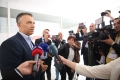 The candidate of the coalition Bashke, Fitojme for the municipality of Durres, Igli Cara, speaking to journalists after voting in the premises of a school in Durres for the local elections of May 14. In Albania, citizens have started voting for the local elections, to elect the mayors for the next 4 years.