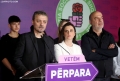 Ardian Cela speaking during a press conference after the announcement of the election results for the municipalities of the Durres district. The winners have thanked the voters who trusted them to run the municipalities for the next 4 years.