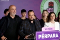 The Mayor of Shijak, Elton Arbana speaking during a press conference after the announcement of the electoral result for the Durres district municipality. The winners have thanked the voters who trusted them to run the municipalities for the next 4 years.