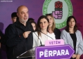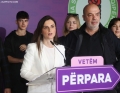 The Mayor of Durres, Emiriana Sako speaking during a press conference after the announcement of the electoral result for the Durres district municipality. The winners have thanked the voters who trusted them to run the municipalities for the next 4 years.