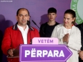 The Mayor of Gjirokaster, Flamur Golemi and the Minister of Tourism and Environment, Mirela Kumbaro during a press conference after the announcement of the electoral result for the Gjirokastar District Municipality. The winners have thanked the voters who trusted them to run the municipalities for the next 4 years.