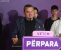 The mayor of Tepelene, Termet Peci during a press conference after the announcement of the electoral result for the Gjirokastar District Municipality. The winners have thanked the voters who trusted them to run the municipalities for the next 4 years.