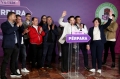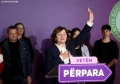 Minister of Tourism and Environment, Mirela Kumbaro during a press conference after the announcement of the electoral result for the Gjirokastar District Municipality. The winners have thanked the voters who trusted them to run the municipalities for the next 4 years.