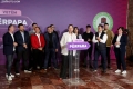 The Minister of Tourism and Environment, Mirela Kumbaro speaking during a press conference after the announcement of the electoral result for the Gjirokastar District Municipality. The winners have thanked the voters who trusted them to run the municipalities for the next 4 years.