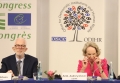 The head of the ODIHR mission for the local elections in Albania, Audrey Glover and the member of the European parliament, Sven Simon speaking during a press conference. Glover spoke about the campaign, which he described as quiet, but very focused on political leaders, while she commented on the problems related to electronic voting.