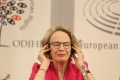 The head of the ODIHR mission for local elections in Albania, Audrey Glover speaking during a press conference. Glover spoke about the campaign, which he described as quiet, but very focused on political leaders, while she commented on the problems related to electronic voting.