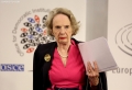 The head of the ODIHR mission for local elections in Albania, Audrey Glover, leaving a press conference. Glover spoke about the campaign, which he described as quiet, but very focused on political leaders, while she commented on the problems related to electronic voting.