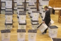 Ballot boxes during the process of counting votes for municipal councils in ZAZ 38, in the premises of the Red School after the mayoral elections in Tirana, as part of the May 14 local elections.
