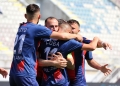 FOOTBALL VLLAZNIA TEUTA - Vllaznia players celebrating scoring a goal during the football match Vllaznia of Shkodra vs Teuta of Durres, 1-0, valid for the Albanian Super League, played at the Loro Borici stadium in Shkodra.