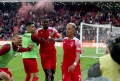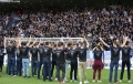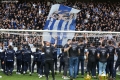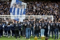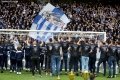 Tirana staff sing with the fans during the derby football match Tirana vs Partizani, 1-1, valid for the Albanian Super League, at the Air Albania stadium in Tirana