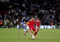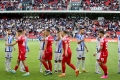 Players meet during the derby football match Tirana vs Partizani, 1-1, valid for the Albanian Super League, at the Air Albania stadium in Tirana