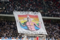 Tirana fans open a banner during the derby football match Tirana vs Partizani, 1-1, valid for the Albanian Super League, at the Air Albania stadium in Tirana
