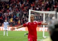 Victor Da Silva of Partizani celebrates scoring a goal during the derby football match tirana vs Partizani, 1-1, valid for the Albanian Super League, at the Air Albania stadium in Tirana.
