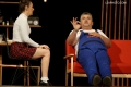 Actors Gentian Zenelaj and Olta Daku, interpreting during the comedy, Certificate of Marriage, of Ephraim Kishon, directed by Driada Dervishi, in the Theater 'Alexander Moisiu' Durres.
