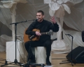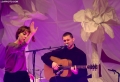 Singer Shpat Deda singing during the concert titled Journey in Words and Sounds, held in the concert hall of the Orthodox Church. The tickets for the 19th have all been sold, prompting Dede to organize a second night of the concert on May 20.