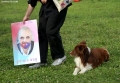 A citizen and his dog with a poster of Prime Minister Edi Rama, colored over, before the Tirana Gay Pride parade, to mark the International Day Against Homophobia, Transphobia and Biphobia in Tirana on May 20, 2022.