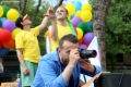 Member and supporter of the LGBT community and a photographer before the Tirana Gay Pride parade, to mark the International Day Against Homophobia, Transphobia and Biphobia in Tirana on May 20, 2022.