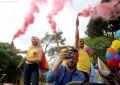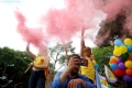 Members and supporters of the LGBT Alliance wave flags and fire smokers in the streets of Tirana, as they take part in Tirana Gay Pride to mark the International Day Against Homophobia, Transphobia and Biphobia in Tirana on May 20, 2022.