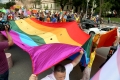 PARADE OF THE LGBT COMMUNITY - Members and supporters of the LGBT Alliance wave flags in the streets of Tirana, as they take part in Tirana Gay Pride to mark the International Day Against Homophobia, Transphobia and Biphobia in Tirana on May 20, 2022.