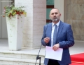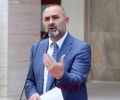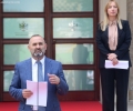 The Minister of Justice, Ulsi Manja speaking in front of the Prime Minister's office, after a government meeting, regarding the approved decisions