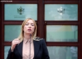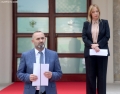 The Minister of Justice, Ulsi Manja and the Minister of Agriculture and Rural Development, Frida Krifca speaking in front of the Prime Minister's office, after a government meeting, regarding the approved decisions