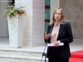 Minister of Agriculture and Rural Development, Frida Krifca speaking in front of the Prime Minister's office, after a government meeting, regarding the approved decisions