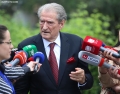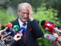 BERISHA SPEAKS TO JOURNALISTS - Former Prime Minister Sali Berisha speaking after a parliamentary session. The deputies voted for the draft law that increases the salaries for the position of the president, prime minister, ministers, deputies and employees of the public administration. The left and right MPs combined their votes and the law received 95 votes in favor and only three against. Berisha said that he is in favor of the salary increase, but he considered it absurd that the salaries of doctors, police officers, and teachers should increase by 1%, while the salaries of deputies and ministers are doubled.